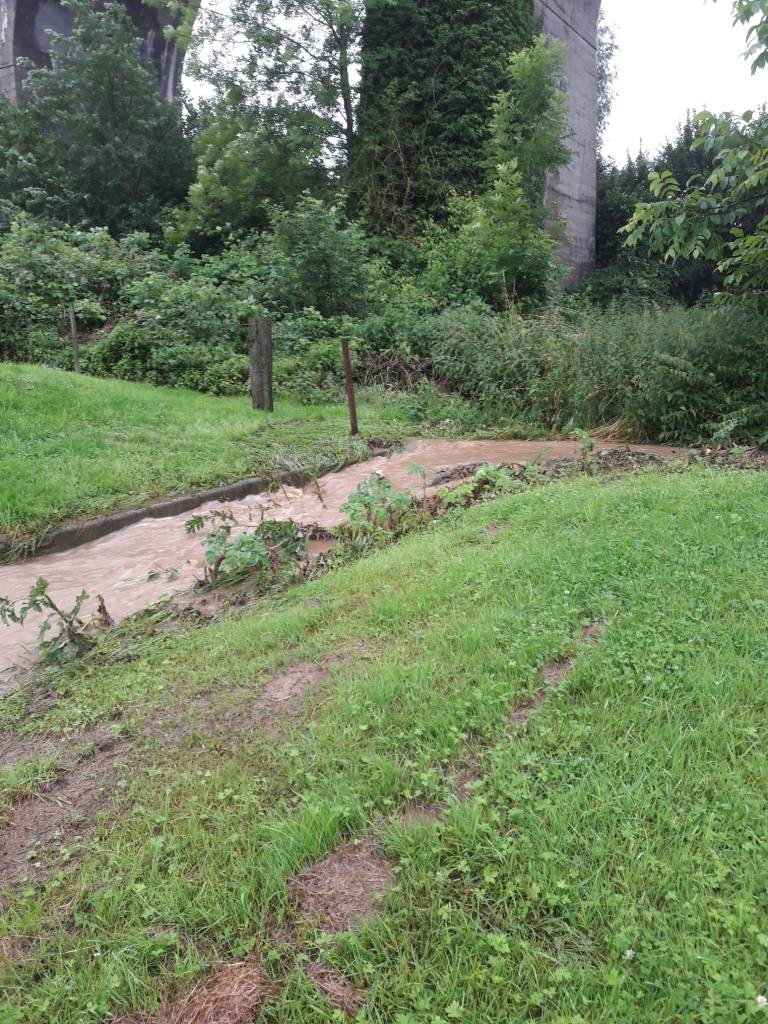 En temps normal, cette «rigole» serpente paisiblement à travers l’herbe, mais, comme le rappelle l’administration flamande, toute la zone est située en zone inondable. Et il arrive à plus d’une reprise que le flot se gonfle, et déborde!