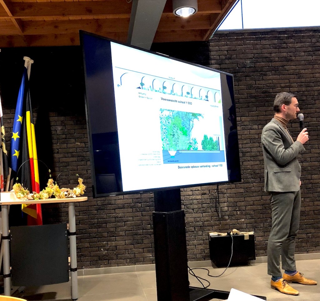 Pour l’occasion, le bourgmestre, Joris Gaens (Voerbelangen) a quitté sa place pour commenter, micro à la main, les modifications du plan initial, qui justifient la relance d’une enquête commodo-incommodo sur place.